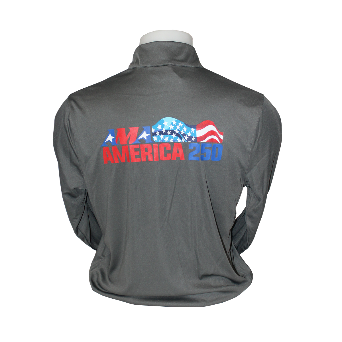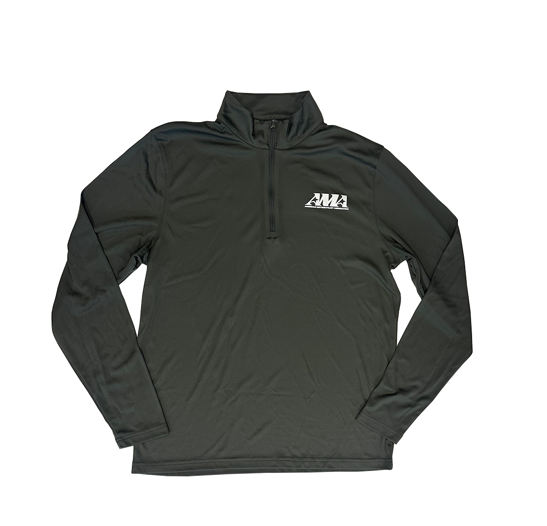 The AMA America 250 Performance Half-Zip is a great layering piece and features a mock neck for extra wind protection. The AMA logo in white is on the left chest on this gray half-zip. The back features the AMA America 250 logo in red, white and blue. You’ll love the comfortable moisture-wicking fabric, which makes it perfect for every ride.